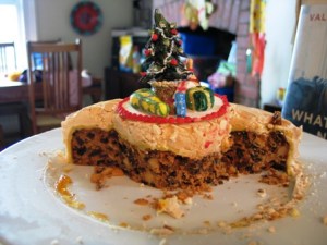 This was my first-ever attempt at a Christmas cake. I baked it back in November and then dutifully ‘fed’ it whisky every week before icing it a few days before Christmas. We’ve all been very impressed with the result, even if the icing looks a little on the haphazard side! Despite all that whisky, it’s still very light, more like a stollen than the rich fruit cake you might be expecting.