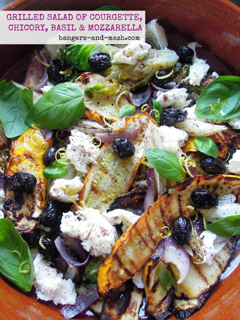 Grilled salad of courgette, chicory, basil and mozzarella from ‘The Natural Cook’