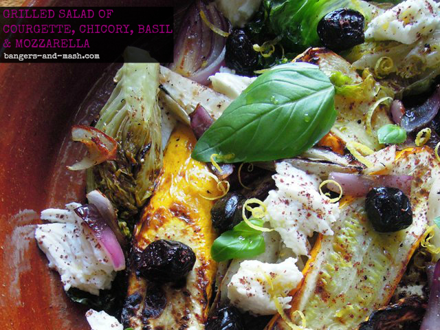 But for the time being, here’s my chicory version of Hunt’s grilled courgette salad…