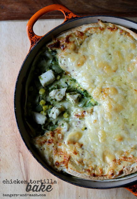This simple Chicken Tortilla Bake is a firm family favourite, and so easy to throw together with a few frozen veggies. It’s basically a lasagne with flour tortillas replacing the pasta sheets.