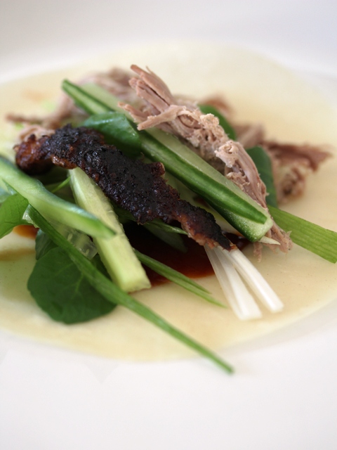 When the duck is cooked and cooled a little, use a couple of forks to pull off and shred the meat and skin, and place on a serving dish.