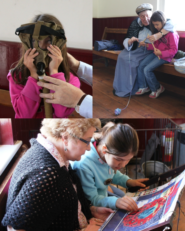 We had a taste of wartime Britain, trying on gas masks, learning to knit for the troops and contributing to a special remembrance tapestry to be exhibited in the local church.