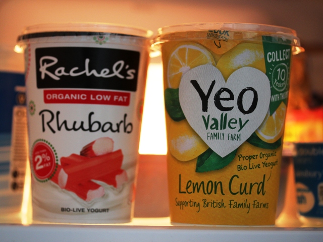 Yeo Valley Lemon Curd Yoghurt and Rachel’s Low Fat Rhubarb Yoghurt