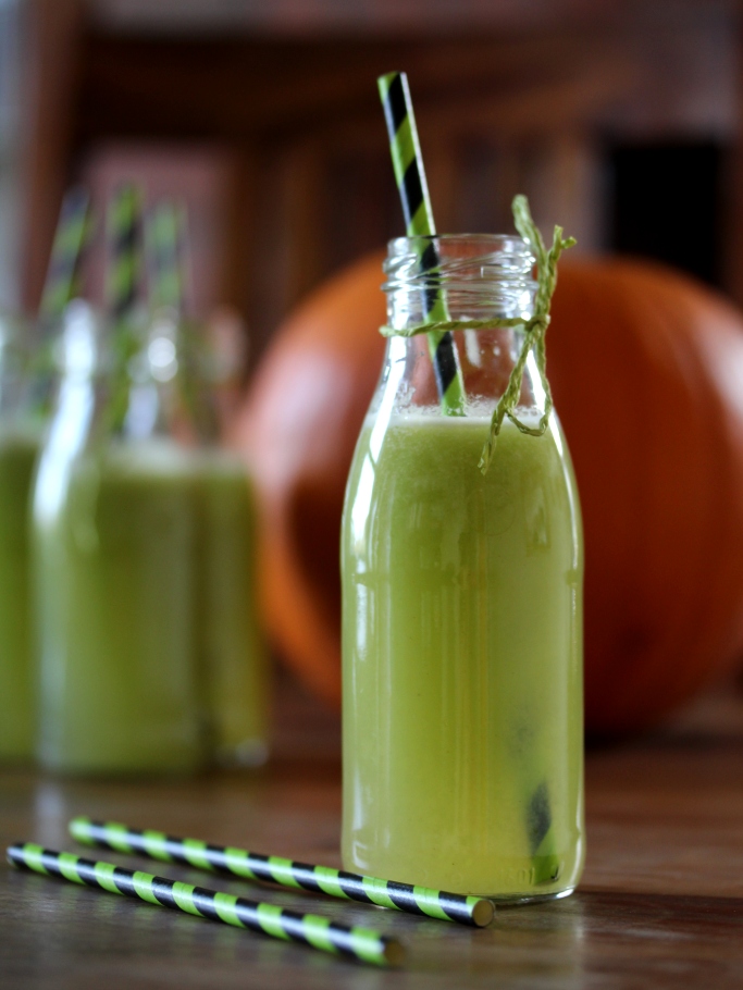 The Halloween-fuelled experiments have been continuing in full force in our kitchen. As well as our macabre muffins, the kids and I have also come up with this delicious green juice chiller.
