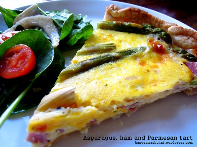 Arrange the chopped ham and asparagus in the pastry case and pour over the cheesy egg mixture. Bake in the oven for 15 to 20 minutes until the filling is set and golden. Leave to cool a little and serve at room temperature with a simple salad.