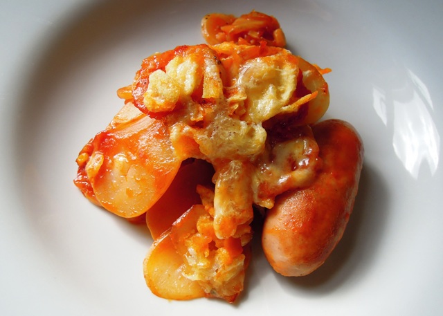 So bumped up the running order a little, I bring you the ‘Star Wars’ sausage stew, a recipe my children (and us grown ups too) adore, which I discovered in my old Blue Peter Book of Gorgeous Grub, circa 1980. The topping of crushed up plain crisps and grated cheese takes me back to my childhood when crisps seemed to appear in hot dishes all the time.