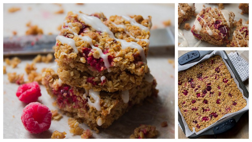 Raspberry and Toasted Coconut Flapjacks with Yoghurt Drizzle from Under The Blue Gum Tree