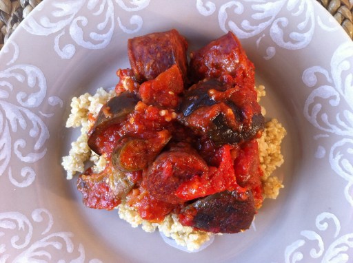 Now don’t these Slow Cooker Turkey Sausages and Veg in the Red look good? This is what you could end up with if you use up what you happen to have in your fridge. Or at least if you live in On Top of Spaghetti’s house anyway! A fabulously warming dish featuring turkey sausages, aubergine (egg plant), peppers, herbs and spices.