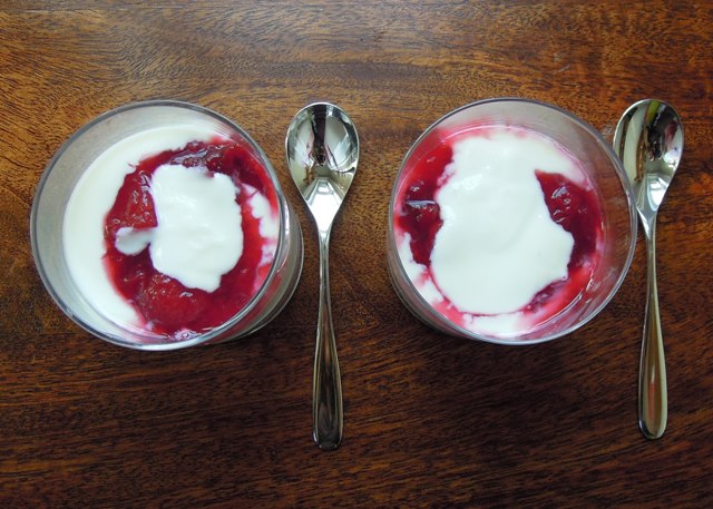 Again it was delicious and certainly more creamy, but I wouldn’t say it was any better than the plum version for the inclusion of cream. So I proudly present a pudding that is delicious without being too bad for you. You decide whether to use cream and yoghurt or just yoghurt – it all depends on how happy you are with the size of your waist I guess.