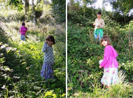 We all spent a splendid Sunday afternoon traipsing over the fields near our home in Somerset, hunting for blackberries and sloes (they’re still sat in the fridge waiting to be added to gin) and trying not to get stung as inevitably the plumpest, juiciest berries are always the ones obscured behind a clump of nettles. When Jess and Mia tired of picking blackberries, they ran around pretending to be galloping horses while Jason and I finished the job.
