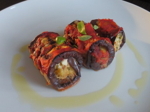 I have never tried Involtini di melanzane before but after seeing this beautiful entry from Leeks & Limoni I really must put that right and make it soon. Aubergine is a favourite ingredient of mine and I do like the sound of these rolls with cheese, pinenuts, passata, mint and oregano.