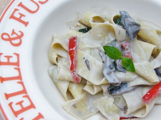 Pepper and Mushroom Pappardelle from Tinned Tomatoes