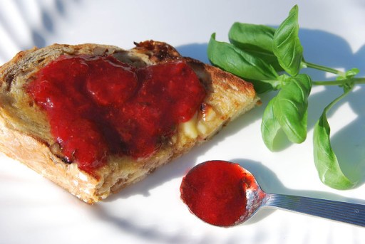 I defy anyone to be able to look at this piece of toast and not instantly crave strawberry jam! Sarah from The Garden Deli brings us this gorgeous strawberry and basil jam, which she describes as not so sweet as your usual strawberry jam, but still with that fresh taste a good strawberry jam should have. I want some now!