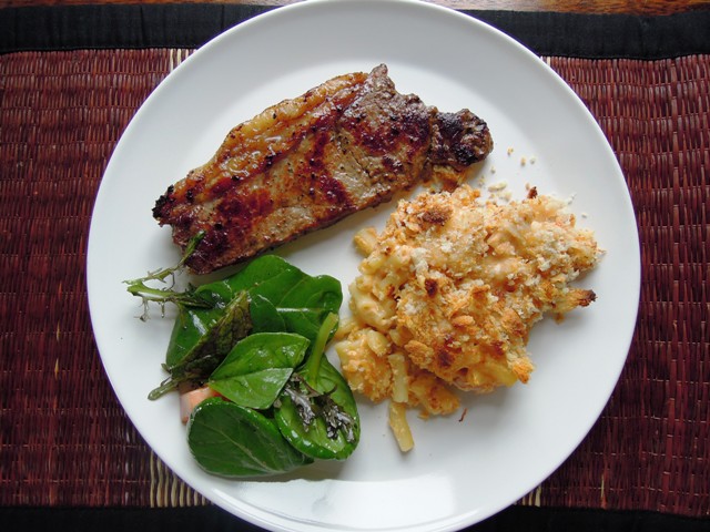 I was curious to see how different restaurant-style macaroni cheese would be from what we usually make. And I have to say it is very good. Very, very good actually. My husband and the girls wolfed it down greedily and it really does work well with a decent steak. We enjoyed ours with griddled sirloin and a simple salad instead of our usual Sunday roast, and it was a rather special meal indeed.