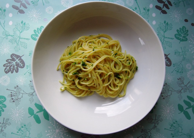 The pesto tastes fresh and green (if you know what I mean) and packs a strong tasty punch so you don’t need too much of it. For its first outing, I served it very simply stirred through a dish of spaghetti and only needed to use a couple of spoonfuls to get the full effect. I’m looking forward to trying it as a crostini or pizza topping next and, according to River Cottage, it’s also good stirred into soups and stews.