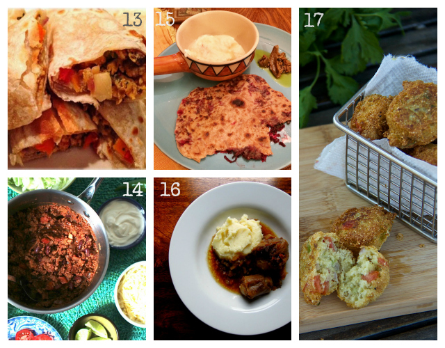 These Beet Parathas (15) from Aneela at The Odd Pantry are a deliciously frugal dinner. Paratha is a stuffed, wholewheat flatbread and Aneela has stuffed hers with a fantastic filling made from just about every part of the beetroot that is then spiced to perfection.