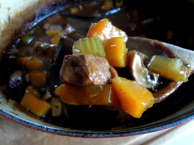 Vanilla and Guinness are a genius combination. Soft and rich and ever so slightly sweet, but without being cloying. The vanilla flavour is subtle; just enough sweetness to be warm and comforting. Teamed with tender beef and vegetables – I opted for butternut squash and celery to continue the sweet them and some chestnut mushrooms for texture and a touch of earthiness – and topped with buttery puff pastry, this dish is definitely my idea of foodie bliss.